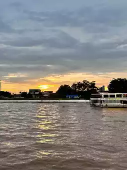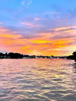 🌇 As the sun began to set, the sky seemed to ignite. Gradual clouds, from golden yellow to orange-red, were reflected on the river. The sky and the Chao Phraya River merged into one endless sea of orange.