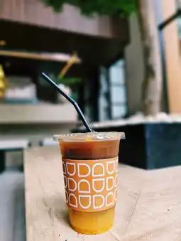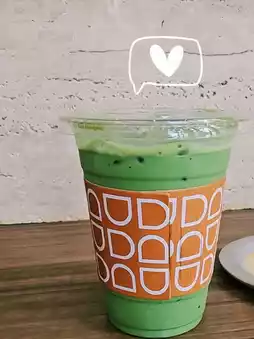 The drink menu offers both coffee and non-coffee options, including a variety of clear teas and matcha. They also have a wide selection of pastries. Today, we ordered the orange coffee and matcha latte. For dessert, we ordered toast with cheese dip. The bread was soft and fragrant.