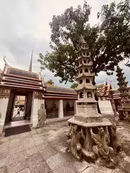 Take some time to pay respects and make merit at Wat Phra Chetuphon Vimolmangklararm Rajwaramahaviharn, commonly known as "Wat Pho." This historic temple is a Bangkok landmark, famous for its magnificent Reclining Buddha statue. The serene atmosphere and stunning ancient Thai art, including beautiful pagodas, make it a perfect spot for a peaceful stroll and photography.