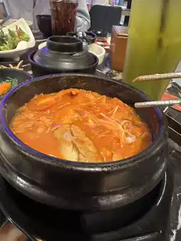 • 🥢 A variety of additional menu items: Korean mixed rice, pork marinated in a special sauce, and appetizers like gyoza and fried spring rolls.