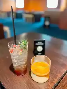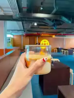 This is the spot we recommend for everyone to take photos and pin for content creation. The second floor is absolutely stunning! It's a wood-toned space that glows orange when lit by the lights. We recommend taking photos at the long corner table, but the real highlight is the staircase.