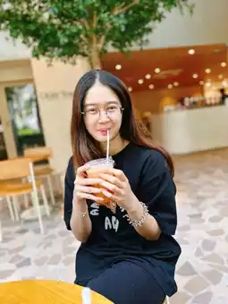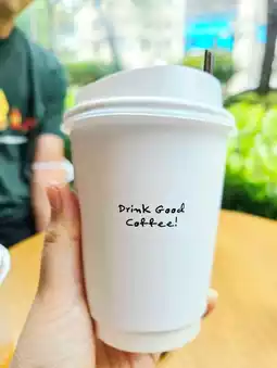 The drinks menu includes both coffee and non-coffee drinks. Prices start at around 100 baht, which is a reasonable price considering the location.