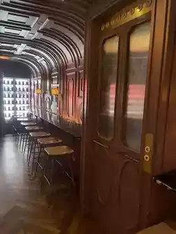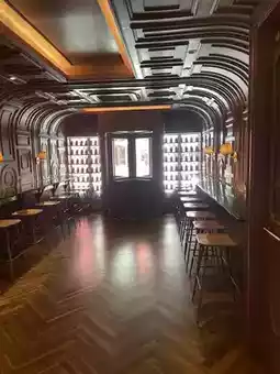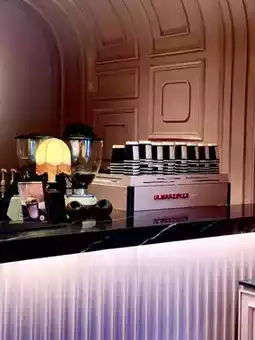 - The cafe can accommodate about 10-20 people, with tables at a long bar and high pink chairs.
