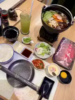 Daisen Primium Japanese Restaurant is located in CentralWorld Ratchadamri on the 6th floor. They offer a wide variety of dishes. We tried the set menu, which was a great value. It included shabu-shabu, rice, kimchi, steamed eggs, edamame, seaweed soup, green tea, and ice cream. The food was delicious, the service was excellent, and the queue was fast. The venue is beautiful, clean, and airy, with a cool Japanese feel. There are plenty of tables. Set meals start at just 185 baht (excluding VAT and service charge). It's a great value.