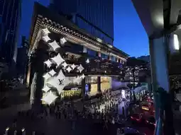 2. Passing by LV Cafe: The Visual Allure of Luxurious Desserts After visiting the temple, we passed by LV Cafe (Gaysorn Amarin). This Louis Vuitton-themed cafe boasts opulent decor, and the Monogram-emblazoned cakes and coffee are mouth-watering! 🛍️ Although we didn't get a seat, the exterior photo ops were already incredibly satisfying. A must-see for LV lovers. 📷 Photo Tip: Take photos of the shop's sign and the desserts in the window, incorporating Monogram elements to create a luxurious feel.