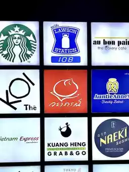 • Food and beverage outlets: Starbucks, Au Bon Pain, After You (To Go), Koi Thé, CoCo ICHIBANYA Express, Vietnam Express, Bigboy Burger, Tomato Noodle, Fuji Quick, Scoozi Urban Pizza, Kuang Heng Chicken Rice, and more.