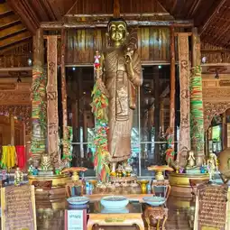 🏚 A raised Thai-style building houses Phra Buddha Maha Parami Phai Ri Pinat as the principal Buddha image, along with various other Buddha statues in different postures, such as Phra Sivali, Phra Pidta Maha Lap, and Phra Pidta Kan Phai.