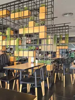 The food is delicious, the coffee is incredibly rich, and the atmosphere is great. Enjoy a meal while watching the planes take off and land.