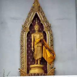 🏠 The ordination hall, built around 1902, houses the principal Buddha image, Phra Phuttha Rattanasirisasada, with a walking Buddha statue placed in front.