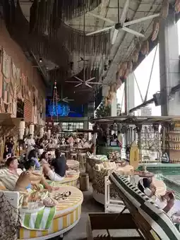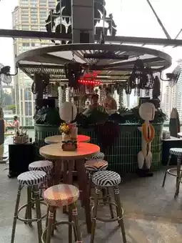 No need to fly to an island; you can enjoy blue skies, a pool, and a tipsy good time right in Bangkok! Located on the 5th floor of EmSphere, this spot features an infinity pool, dreamy lounge chairs, and a chic bar. During the day, you can relax and take stunning photos, while at night, it transforms into a vibrant music party.