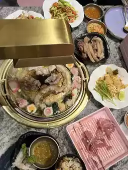 Moo Kratai is a really cool place. - Located in a shopping mall, the air conditioning is cool, there's a lot of food, and the taste is good. It's not cheap, but if you order a set with premium items, this meal is worth it. - And if you post photos on social media, your friends will scream. #recommendedrestaurant #MooKratai #newporkbarbecuerestaurant #porkbarbecuerestaurant