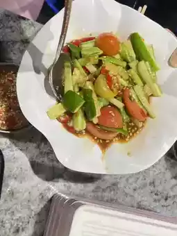 • A wide variety of side dishes and appetizers are available. Somtam, yam, khanom jeen, fried food, desserts, and Thai sweets are also available. This creates a grand atmosphere, not just a simple pork and vegetable dish. The combined photos of the dishes add a vibrant touch.