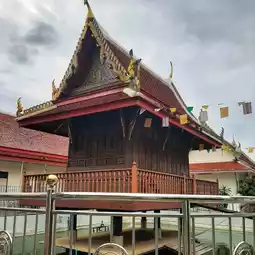 🏠 The vihara: The first building is made of concrete in Khmer-style architecture, while the second is crafted from teak wood with intricate carvings, believed to have been built during the Rattanakosin period around 1941.