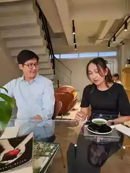 The shop is located on the roadside in a commercial building. It may seem small from the outside, but once you step inside, it's open and airy, with high ceilings and three floors. The walls behind the bar counter are decorated with brown bricks, giving it an Ayutthaya feel.