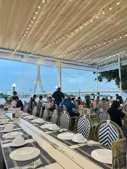 Riverside restaurant on the Chao Phraya River • Enjoy the breeze and admire the bridge •