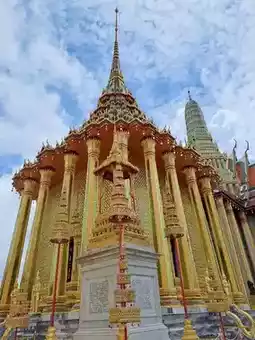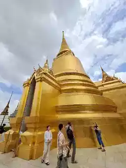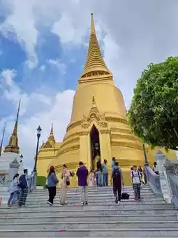 เมื่อเดินเข้าสู่เขตพระบรมมหาราชวัง คุณจะได้พบกับบรรยากาศที่งดงามอลังการ 🏰 ทุกอาคารถูกออกแบบอย่างประณีต ประดับด้วยกระจกสีและทองคำที่ระยิบระยับเมื่อกระทบกับแสงแดด 🌞 เสมือนเข้าไปอยู่ในโลกอีกมิติที่เต็มไปด้วยพลังแห่งศรัทธาและความศักดิ์สิทธิ์
