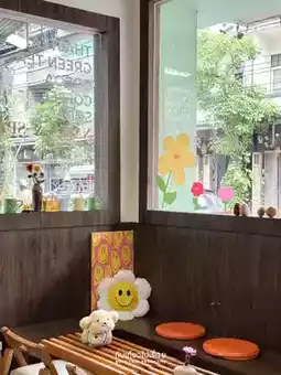 #GetDiscountsWithoutLuck It's like we're on a Talad Noi cafe hunt. Walking past the shop, we couldn't help but feel so cute we had to give it a try. The shop's facade is painted in a soft green tone with large mirrors and decorated with cute flowers.
