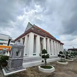 Royal Historic Temple Attractions in Bangkok, Thailand: Wat Nang Nong, a solemn white building, suitable for taking photos📸