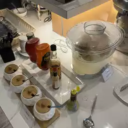🍽 Food & Drink: A comprehensive selection of hot meals, snacks, salads, pastries, and a bar with juices, fresh coffee, and light alcoholic beverages, all replenished at all times.