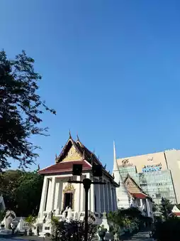 One-day tour of royal temple attractions in Sukhumvit District, Bangkok, Thailand, white marble Siamese cultural temple architecture, suitable for taking photos 📸 check-in