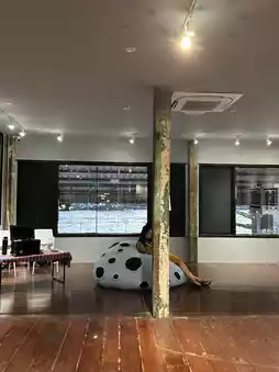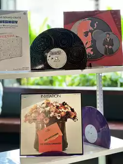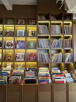 After walking around many places, we finally reached our final destination, which is our favorite: Such a Small World, located in the Chaipatanasin Building. It's perfect for relaxing and taking photos. There's a record library where you can borrow records, Nintendo board games, and drinks are also available.