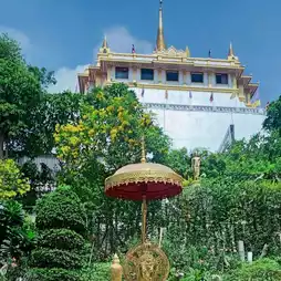 Wat Saket Ratcha Wora Maha Wihan, also known as Wat Phu Khao Thong, is a second-class royal temple located on the banks of the Maha Nak Canal. Its distinctive feature is the majestic Phu Khao Thong (Golden Mount) perched on a high hill, visible from afar. This ancient temple dates back to the Ayutthaya period. To reach the temple, climb 344 steps and enjoy a 360-degree view of Bangkok. This temple is considered sacred and incredibly beautiful.