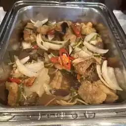 • 🍚 Steamed rice with Thai-style side dishes like stir-fried fish 🐟 and pan-fried eggs 🍳