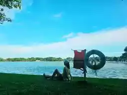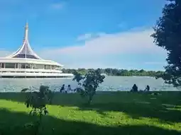 The day we visited, the weather was pleasant and cool. We decided to leave early to avoid parking issues and avoid the crowds. If you're driving, there's a 10 baht entrance fee and a 10 baht car fee. Personally, I arrived around 4:00 PM. The weather was perfect, with some mild sunshine. Those who don't like the sun can arrive around 5:00 PM, but it gets crowded. On weekends, you'll find plenty of walking and jogging companions. There's also a health park with exercise equipment, practically an outdoor gym. 😅✌️ I've observed families bringing their children for a stroll, picnics, and couples lounging by the pond, taking photos, and pedaling paddle boats. It's so romantic, and the cool breeze makes you forget you're running. 😂🏃♀️