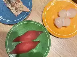 • Conveyor belt sushi plates are priced by color:
