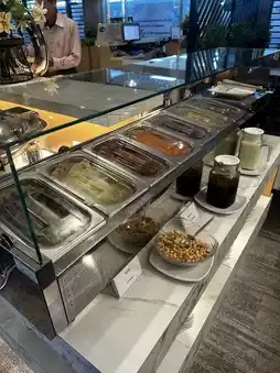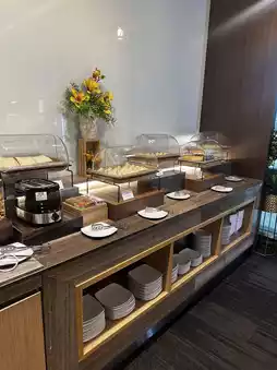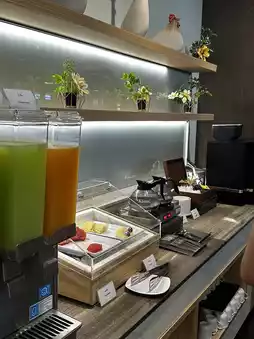 Free Wi-Fi, TV, Beverages: A wide selection of beverages including coffee, tea, soft drinks, and alcoholic beverages. Food: Snacks and light meals are available, including freshly baked bread, soup, and desserts. Restrooms and showers are also available.