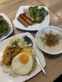 Thai and international cuisine such as jungle curry, pastries, and croissants are served. A wide selection of beverages, including wine and juices, is available. Private and open-air seating areas offer a peaceful atmosphere, perfect for relaxing or working.
