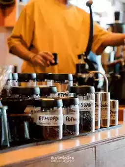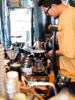 Although it's a small shop, they offer a wide selection of coffee beans, both Thai and international. The decor is extremely camping-style, with vibrant colors, furniture, and coffee equipment, creating a feeling like you're brewing your own coffee amidst a natural setting.