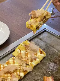 I ordered the set menu, which included okonomiyaki, yakisoba, grilled bacon, and stir-fried cabbage. I also ordered a cheese omelet and a lemon drink. It tasted just like I was eating it in Japan. I loved the yakisoba! It was hot and flavorful, the noodles were good, and not too salty. The omelet was also delicious and very soft. I highly recommend it! 😋