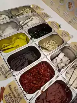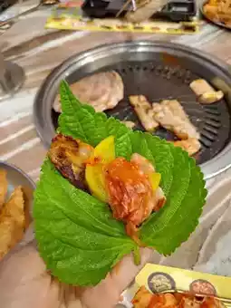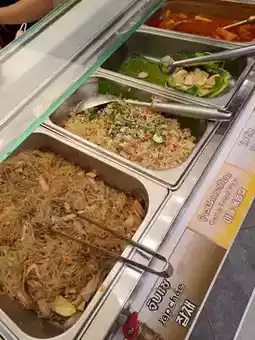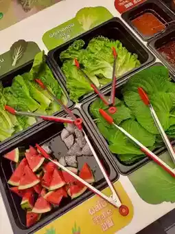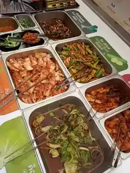 ทีเด็ดของที่นี่คือ เนื้อหมู ที่มีให้เลือกหลากหลายแบบ ทั้งหมูสามชั้นหมัก หมูหมักซอส 🐖 และยังมีเมนูอื่น ๆ อีกเพียบ ไม่ว่าจะเป็นไก่ทอดเกาหลี, ต็อกบกกี, จับแช, ซุปกิมจิ, ข้าวผัดกิมจิ และอื่น ๆ อีกมากมาย! 🍚 แถมยังมีผักสด ๆ และเครื่องเคียงให้เลือกเยอะมาก ๆ 🥬 สามารถตักได้ไม่อั้นเลย!