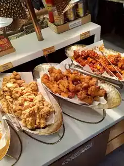 The star of the show here is the pork, with a wide variety to choose from, including marinated pork belly and other cuts. 🥩 There are also tons of other amazing dishes like Korean fried chicken, tteokbokki, japchae, kimchi jjigae, kimchi fried rice, and more! 🍛 The fresh vegetables and side dishes are plentiful, and you can grab as much as you want. 🥬