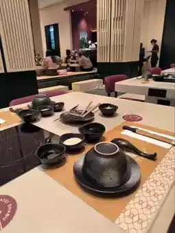 We went to the restaurant on Saturday morning. Katei Shabu is located on the 4th floor of Siam Paragon. We arrived at 10:50 AM and the place was busy, but the tables weren't full yet. By 11:00 AM, people who arrived later had to wait in line.