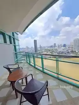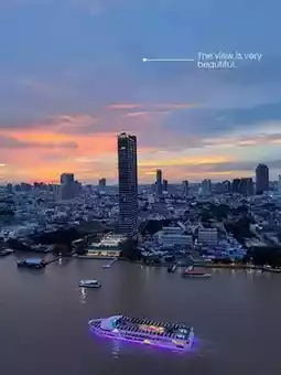 The room also includes a convenient pantry 🍳 with basic kitchen facilities, perfect for reheating meals or preparing light snacks. The bathroom is large, with a bathtub and all the amenities you need for a relaxing stay 🛁. The highlight is definitely the private balcony with a breathtaking panoramic view of the Chao Phraya River, especially during sunset when the sky glows with warm golden light 🌅✨.