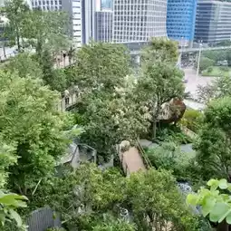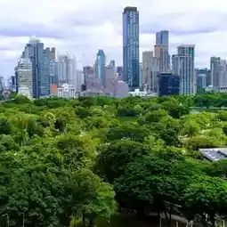 Combining “urban life and nature” — a large rooftop park with city and Lumphini Park views.