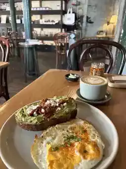 • 🍳 All-day brunch menu items like smashed avocado toast, breakfast sandwiches, and smoked salmon dishes.