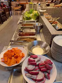 • Grilling Service! 🤩 This is a huge plus! You can choose your fresh meat and hand it over to the staff to grill for you, then bring it back to your table's electric grill to keep warm. This means perfectly cooked BBQ without having to smell like smoke afterward! (You can still enjoy grilling yourself if you prefer!)