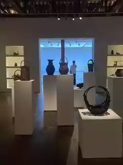 The space is divided into several zones. For example, the first floor may house a collection display and a product shop, while the upper floor is a gallery or art exhibition area.