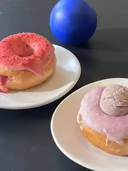🌹 Raspberry Rose: A cute pink donut filled with sweet and sour raspberry jam.