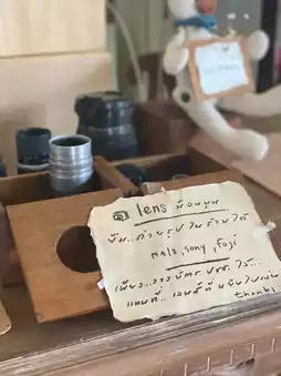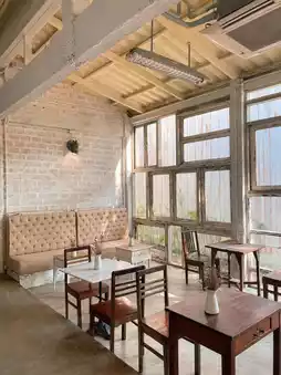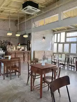 The interior is decorated in a vintage style, open and airy. The drink counter is in the middle, with a small piano corner to the side. There's also a corner decorated with various camera models as a background, perfect for taking cool photos.