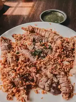 Here Hai is one of Bangkok’s most talked-about eateries, famous for its massive portions of crab fried rice. I tried their signature dish, and it lived up to the hype—the rice was fragrant, fluffy, and loaded with sweet, chunky crab meat. The flavors were bold yet balanced, and the portion was generous enough to share.