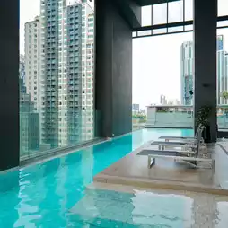 Another highlight that truly melts my heart is the infinity pool, with its panoramic views of the city's skyscrapers. The atmosphere is simply stunning. Sitting by the pool or swimming is a delight. And most importantly, you'll get beautiful photos to share on social media without having to worry about finding a perfect spot. 📸💦