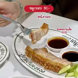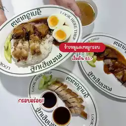 🔥 Roast Pork and Crispy Pork Rice at Luk Hia Thep's Nakniwat branch is a foodie's paradise! 🍖 Thick slices of roast pork with a subtle grilled aroma, perfectly tender, not dry or tough. 🥩 Hong Kong-style crispy pork with thin, crispy skin, a delightful bite without being too harsh, and perfectly juicy on the inside. ✨ The sauce is the star of the show, with a rich, aromatic flavor that's not overly sweet. Paired with the roast pork and crispy pork, it's truly delectable. One plate is never enough, and it's no wonder the restaurant is packed with people. 🤤 Whether you're craving a light snack or a serious lunch or dinner, this is a satisfying and filling meal. 📍 The Nakniwat branch is conveniently located on the main road, near Lat Phrao-Chok Chai 4. A stop is well worth it for both deliciousness and a satisfying meal.