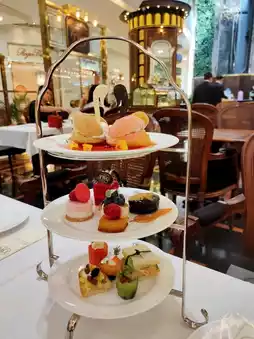 The afternoon tea menu, which changes depending on the season, is also available, and it's served on a cute three-tiered tray. ❤️