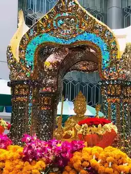 Famous for the golden four-faced Brahma statue 🟡, the shrine attracts devotees and tourists alike 🌸. Visitors can witness traditional Thai dances 💃 offered as prayers, make offerings of flowers and incense 🌿, and soak in the spiritual atmosphere. A peaceful yet vibrant spot amid Bangkok’s bustling cityscape 🏙️.