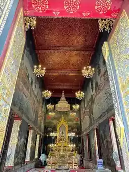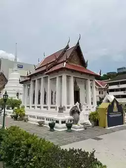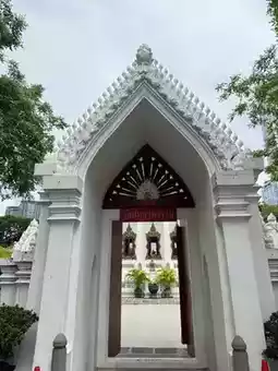 One-day tour of royal temple attractions in Sukhumvit District, Bangkok, Thailand, white marble Siamese cultural temple architecture, suitable for taking photos 📸 check-in