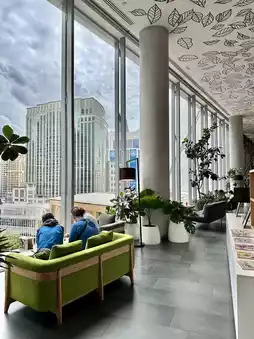 From its floor-to-ceiling windows, you’ll enjoy sweeping views of Bangkok’s skyline. By day, natural light floods the space, perfect for quiet reading, coffee breaks, or co-working. At night, the city glitters below, creating a sophisticated backdrop for dinner or dessert.
